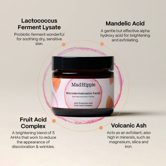 Mad Hippie was built on the notion that natural skin care can be every bit as effective as traditional. Parabens, synthetic fragrance, dyes, petrochemicals, PEGs, SLS and other nasty additives aren't necessities. In fact, they have no place in the products we, and those we love, put on our bodies.