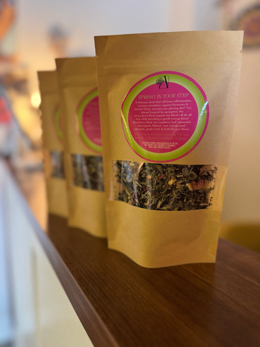 Each bag of loose leaves and herbs contains either 30 or 90 one-teaspoon servings of tea.