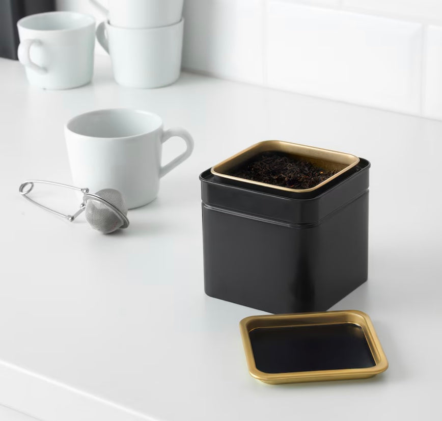 Airtight black metal herb and tea storage