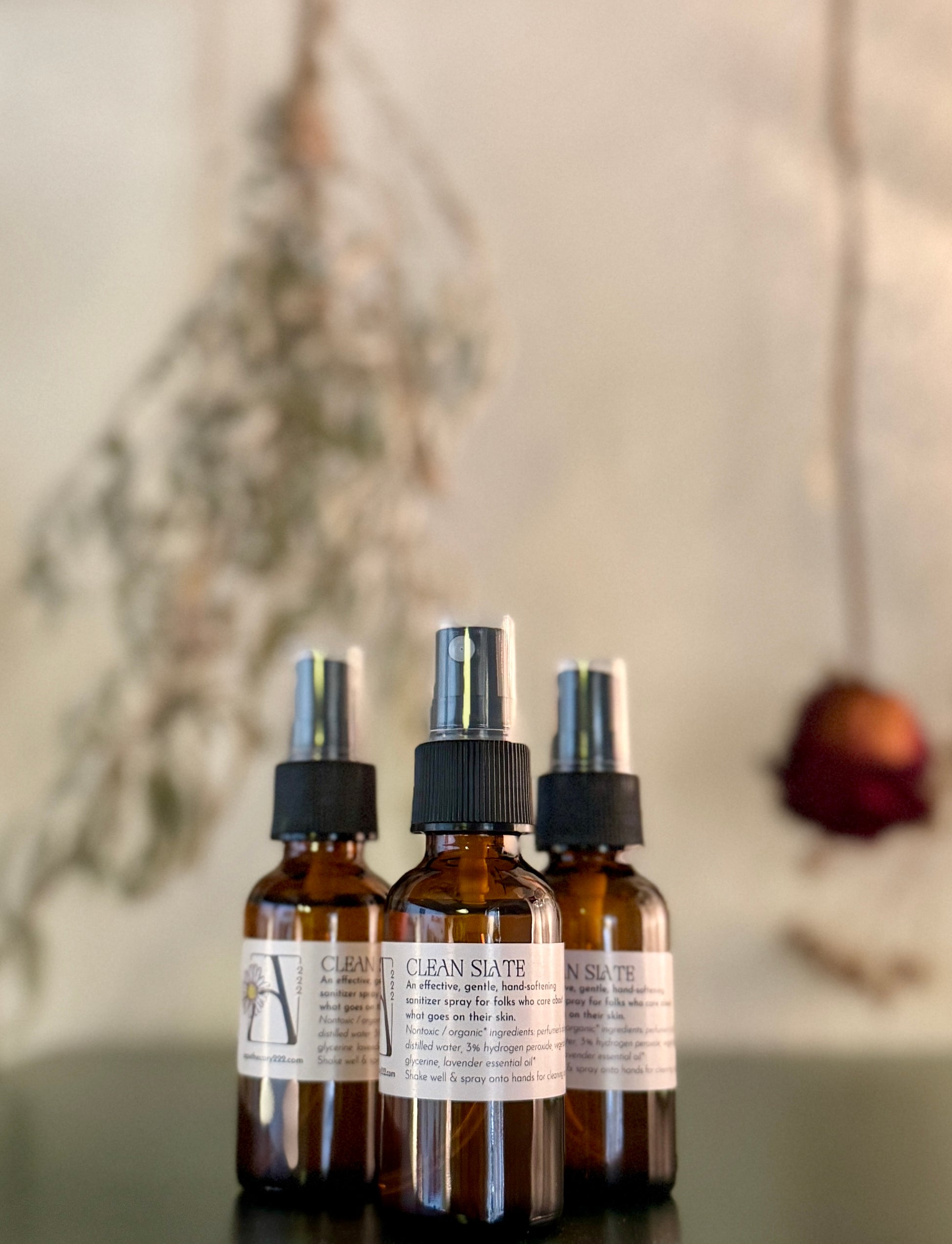 An effective, gentle, hand-softening sanitizer spray for folks who care about what goes on their skin.