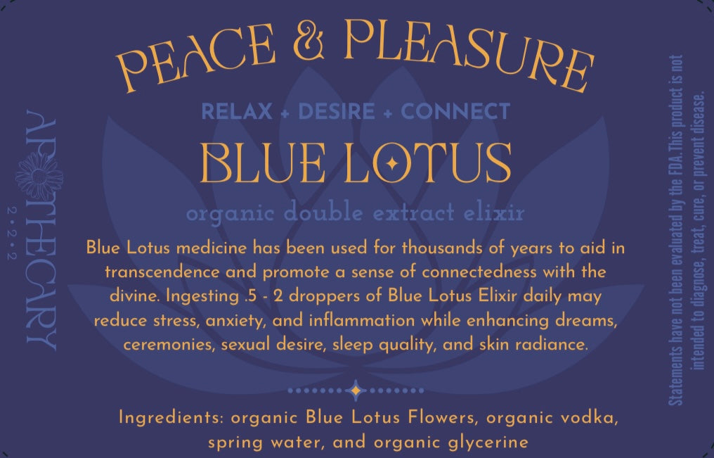 Ingredients: organic Blue Lotus flowers, organic vodka, spring water, & organic glycerine