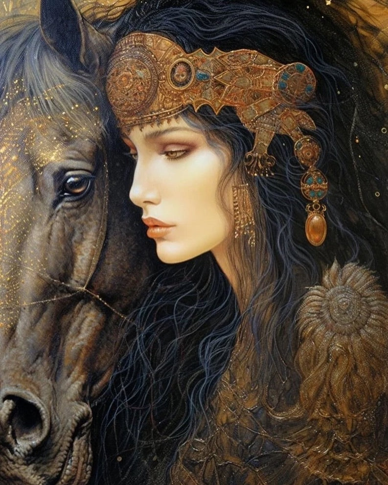 Rhiannon: "the Night Queen" and goddess of the moon.