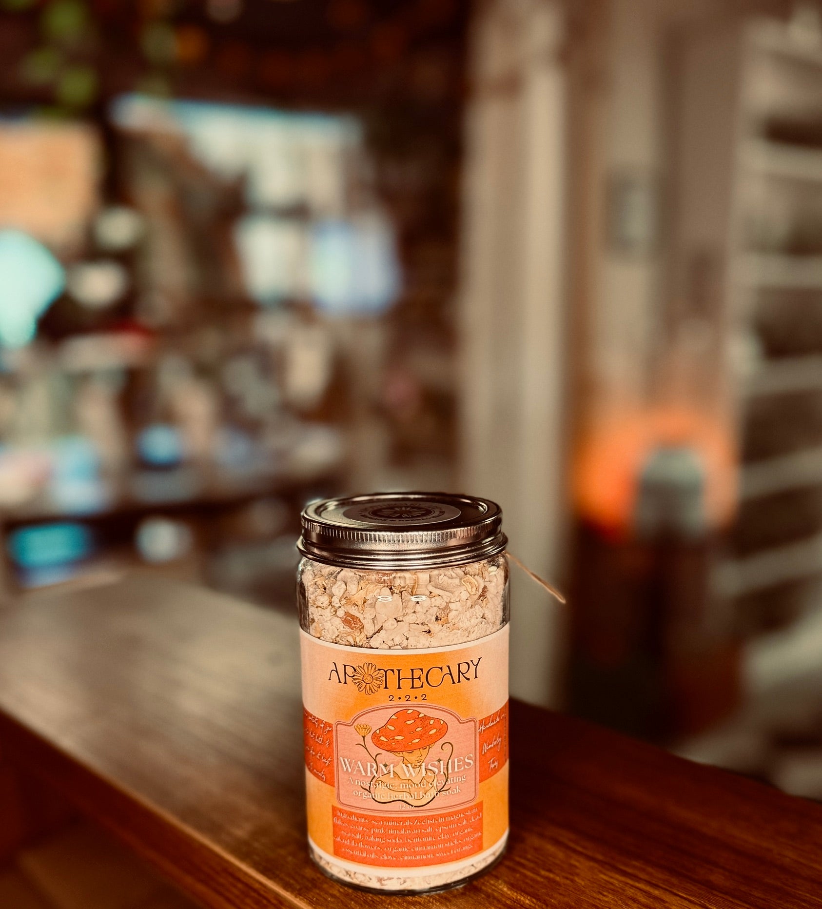 Warm your bones, elevate your mood, and rejuvenate your skin in the healing herbal salt bath we call Warm Wishes!